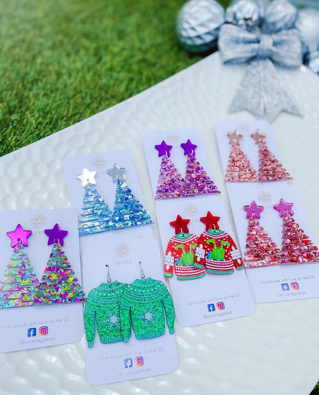 Silver, Green & Red Chunky Glitter Christmas Tree studs