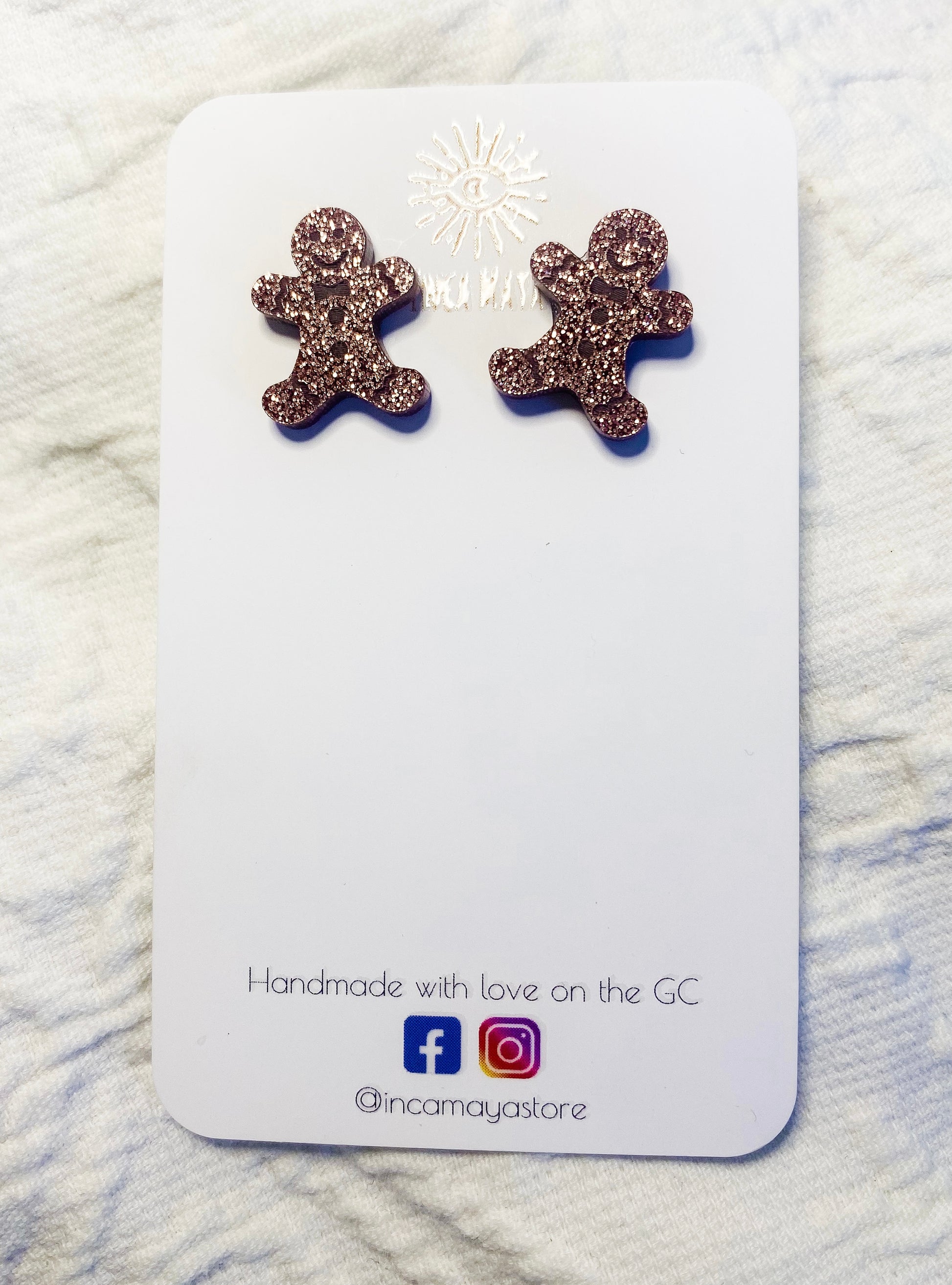 Materials: Copper Glitter Acrylic Gingerbread findings finished with Surgical Stainless Steel (304) Earring Posts & Surgical Stainless Steel (304) Bullet Backs.