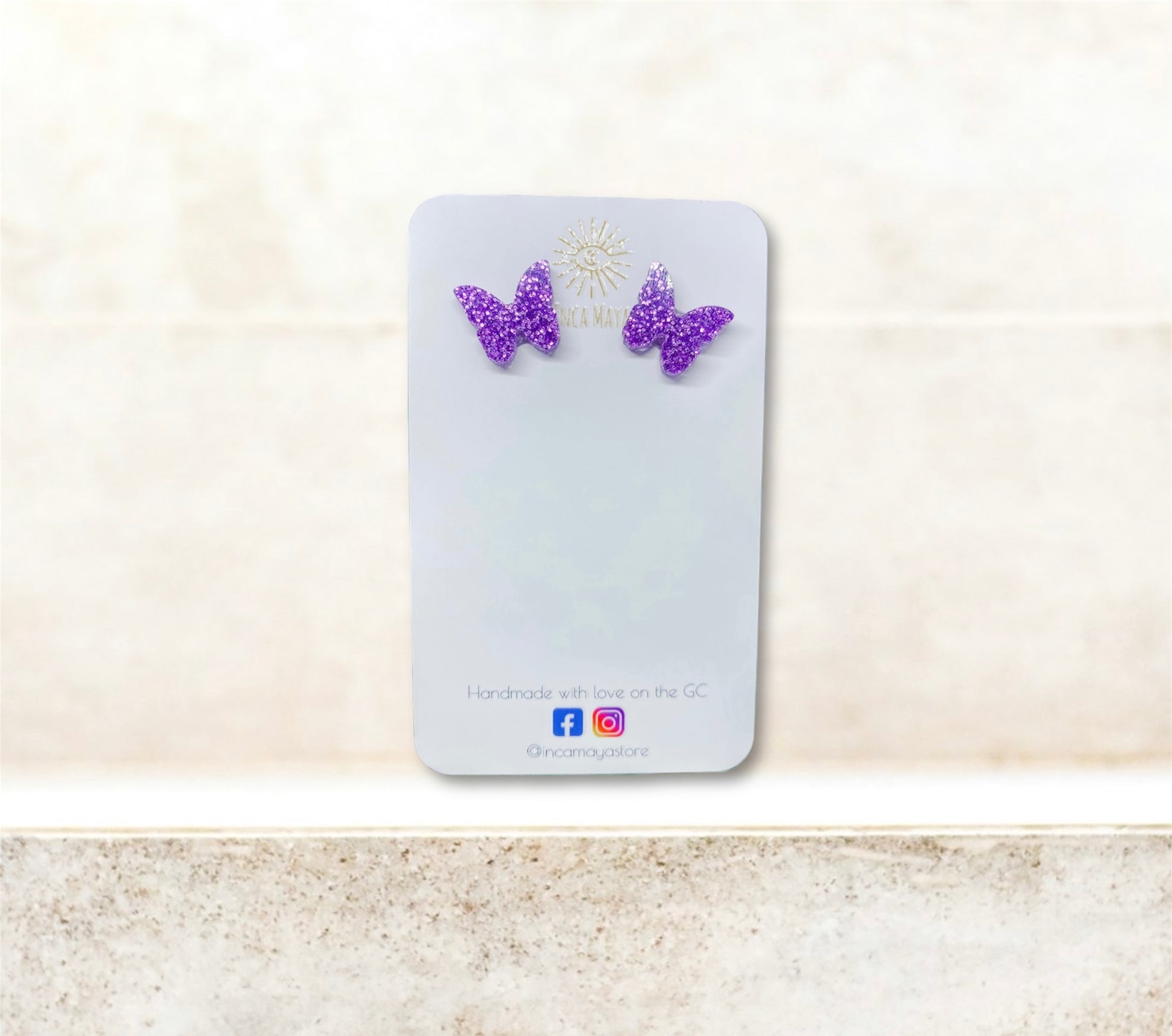 Materials: Glitter Acrylic butterfly findings finished with hypoallergenic Earring Posts.